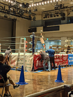 With Taro Nohashi being the much bigger of the two, it appeared that Pretty Ota was going to be an easy elimination for him. But try as he might, Nohashi could not keep Ota down for a pinfall or toss him to the floor.